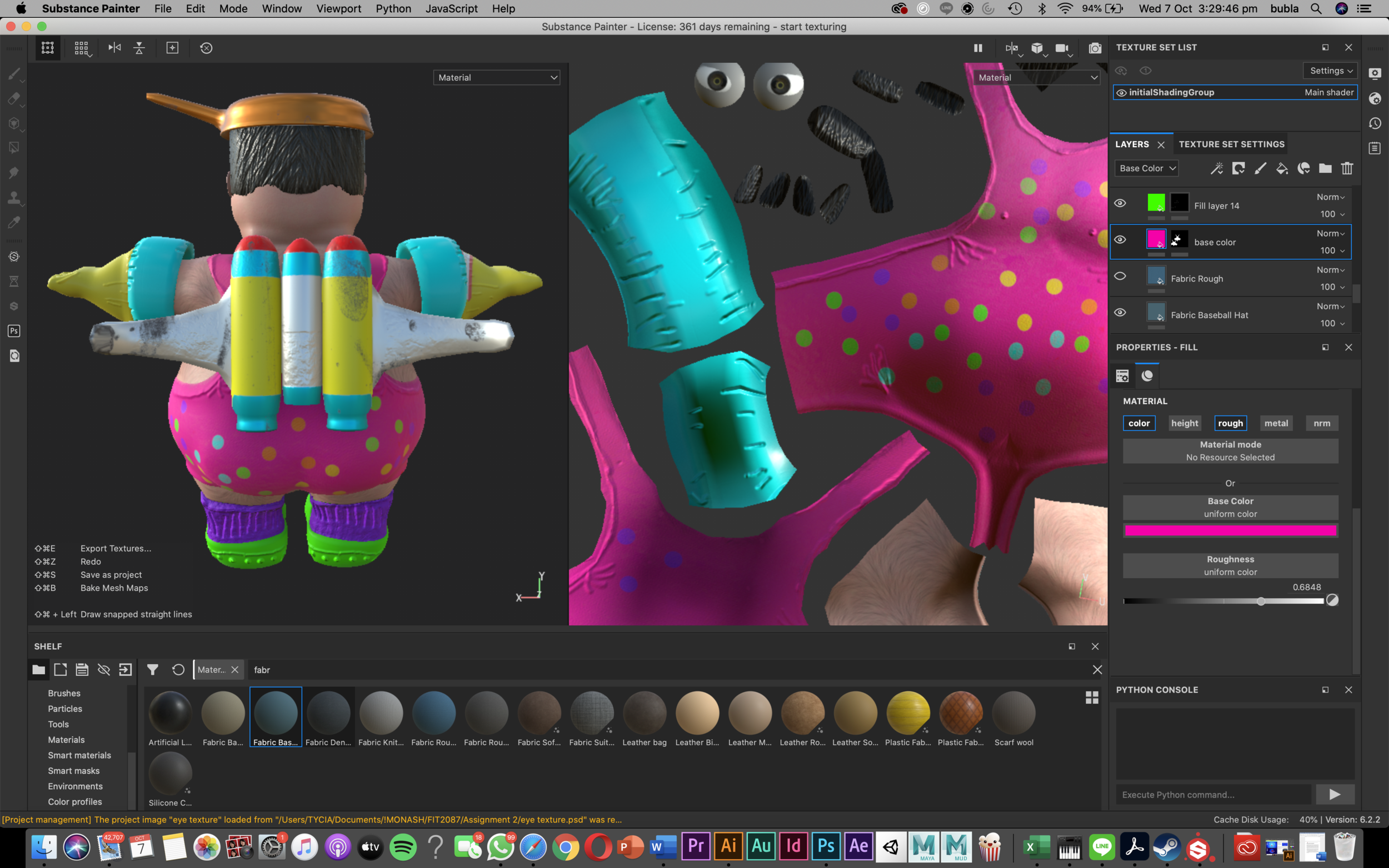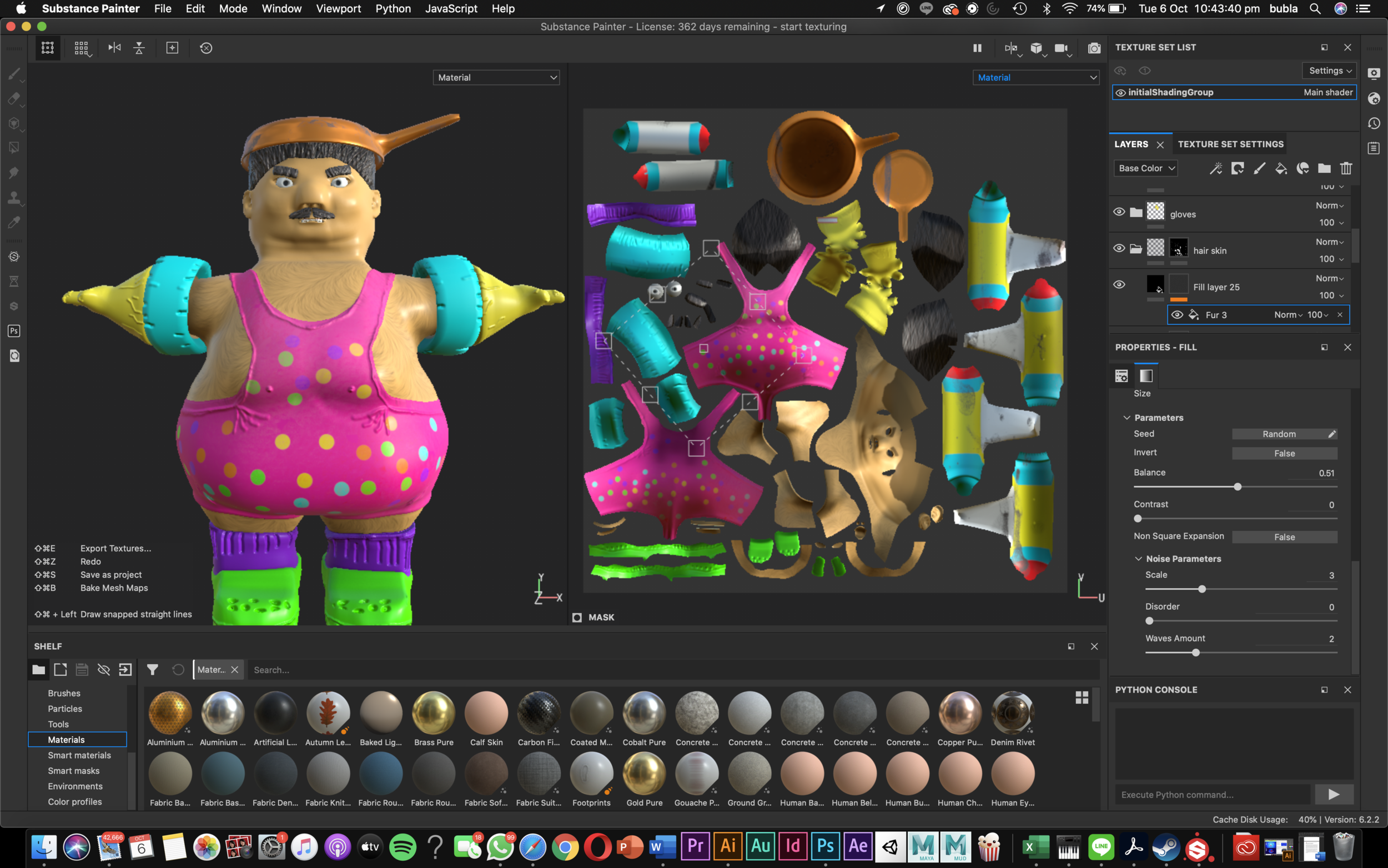 Character texturing using substance painter