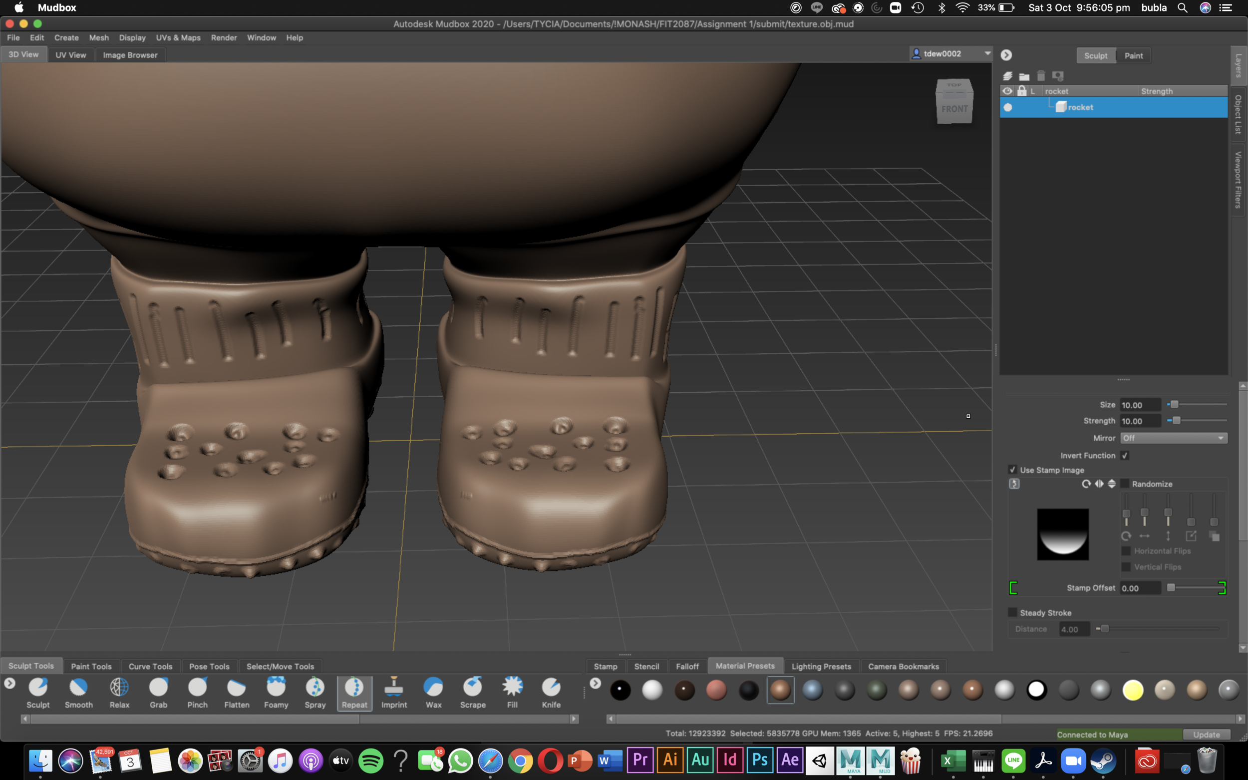 3D sculpting in MudBox